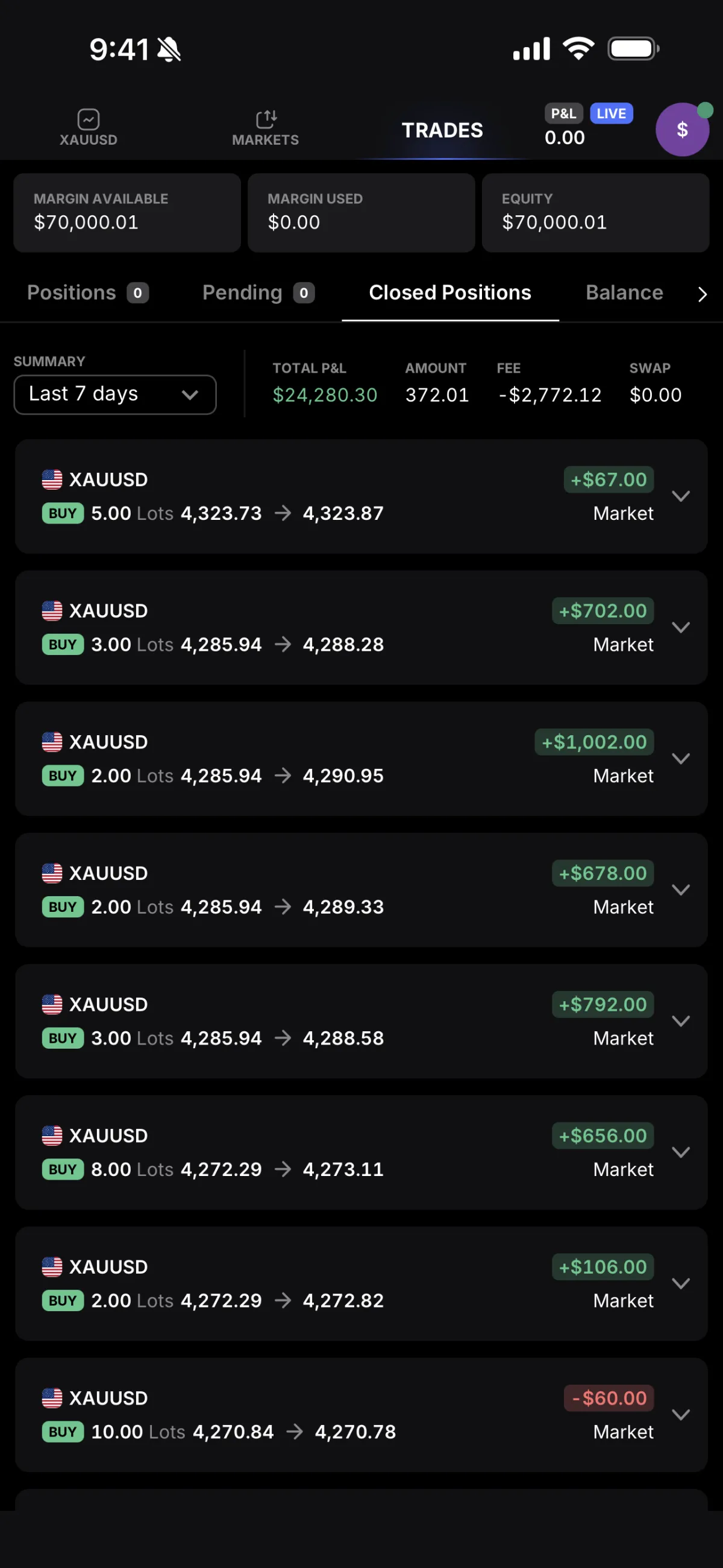 Once you pick the Trade & Travel package, within a few days they give you a $10,000 challenge account. First, you practice on demo by copying trades (like Arabella’s). When you’re ready, I have you take the challenge and pass it.